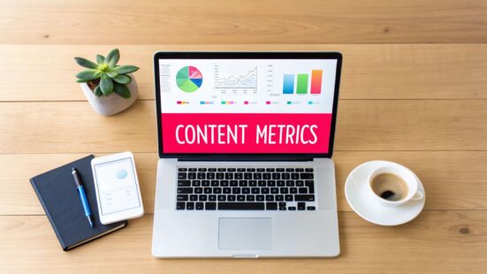 "Content performance metrics" might sound like another bit of marketing jargon, but they're simply the data points that tell you if your content is actually working. Think of them as the vital signs for your content strategy. The big ones you'll hear about are engagement rate, conversion rate, and organic traffic, and for good reason—they tie directly back to how people are interacting with your work and, ultimately, how it impacts your business.